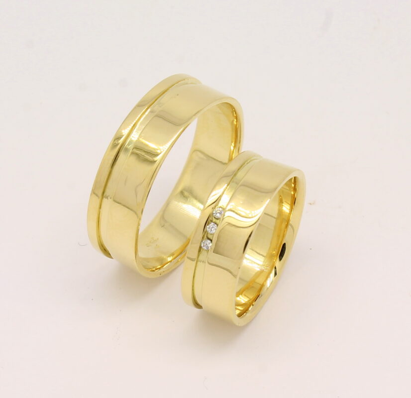 Par de Alianças Listrada 3 Diamantes 15 gramas Ouro 18k 750