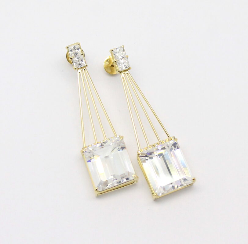 Brinco Zirconia Pendurado Ouro 18k 750 R$3.300,00